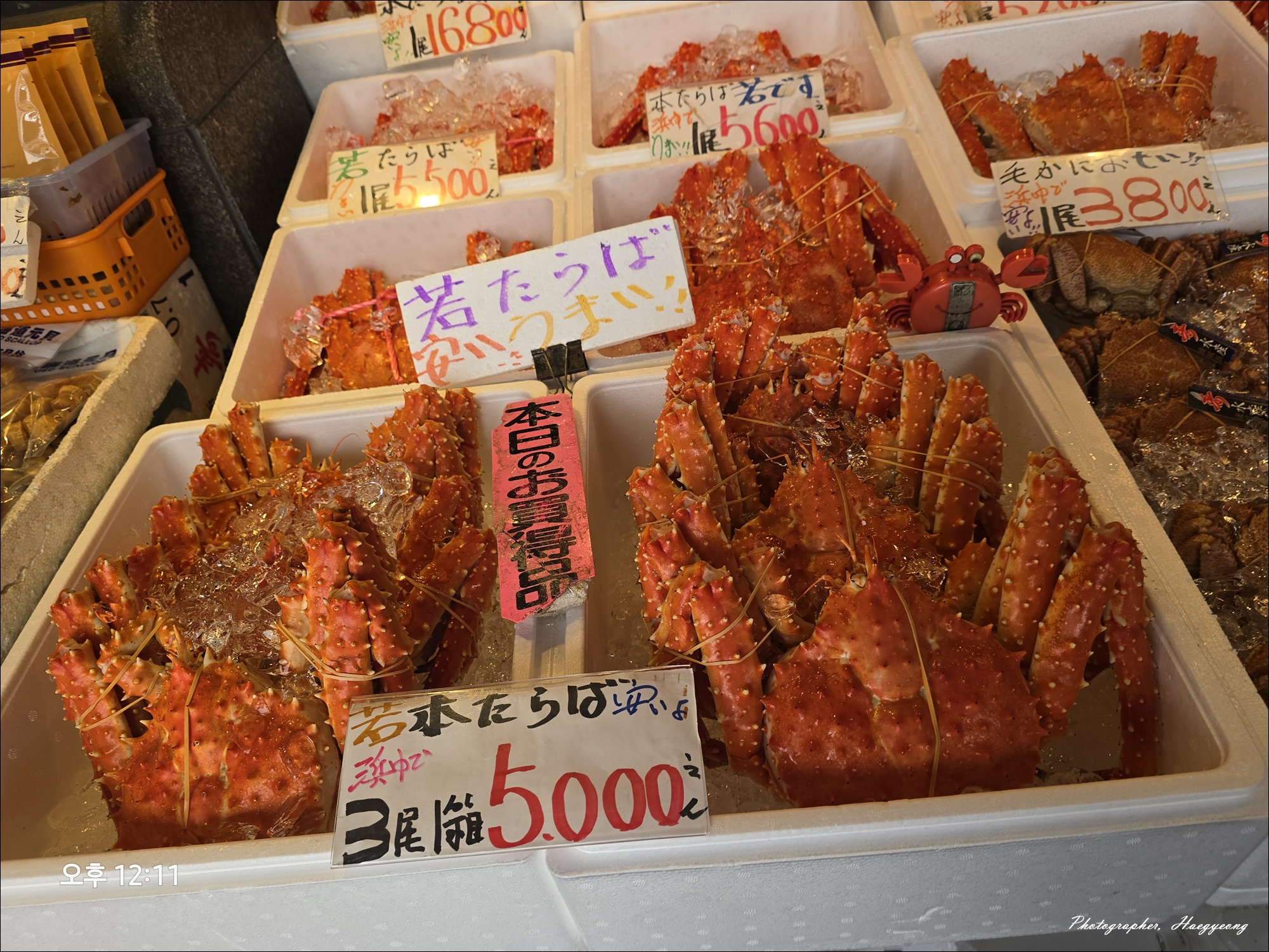 여름이지만 시장에서 팔고 있는 킹크랩