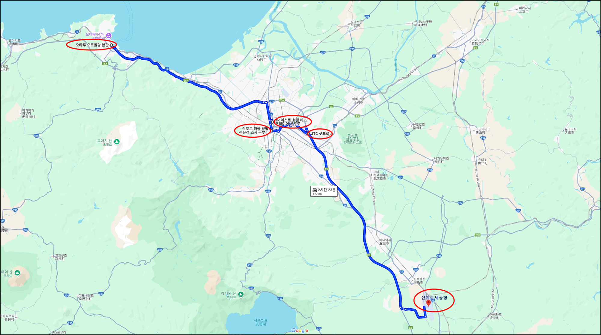 JR 이스트 호텔-오타루 오르골본당-삿포로 해산물거리(스시덮밥)-면세점-신치치토세공항