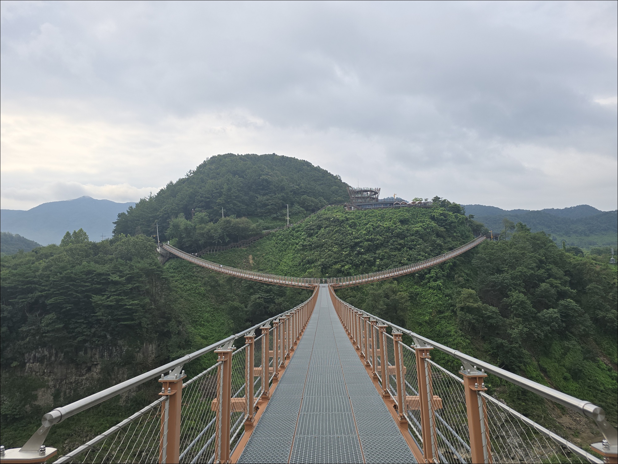 전망탑에 오르니 중간에 Y형 출렁다리가 있고