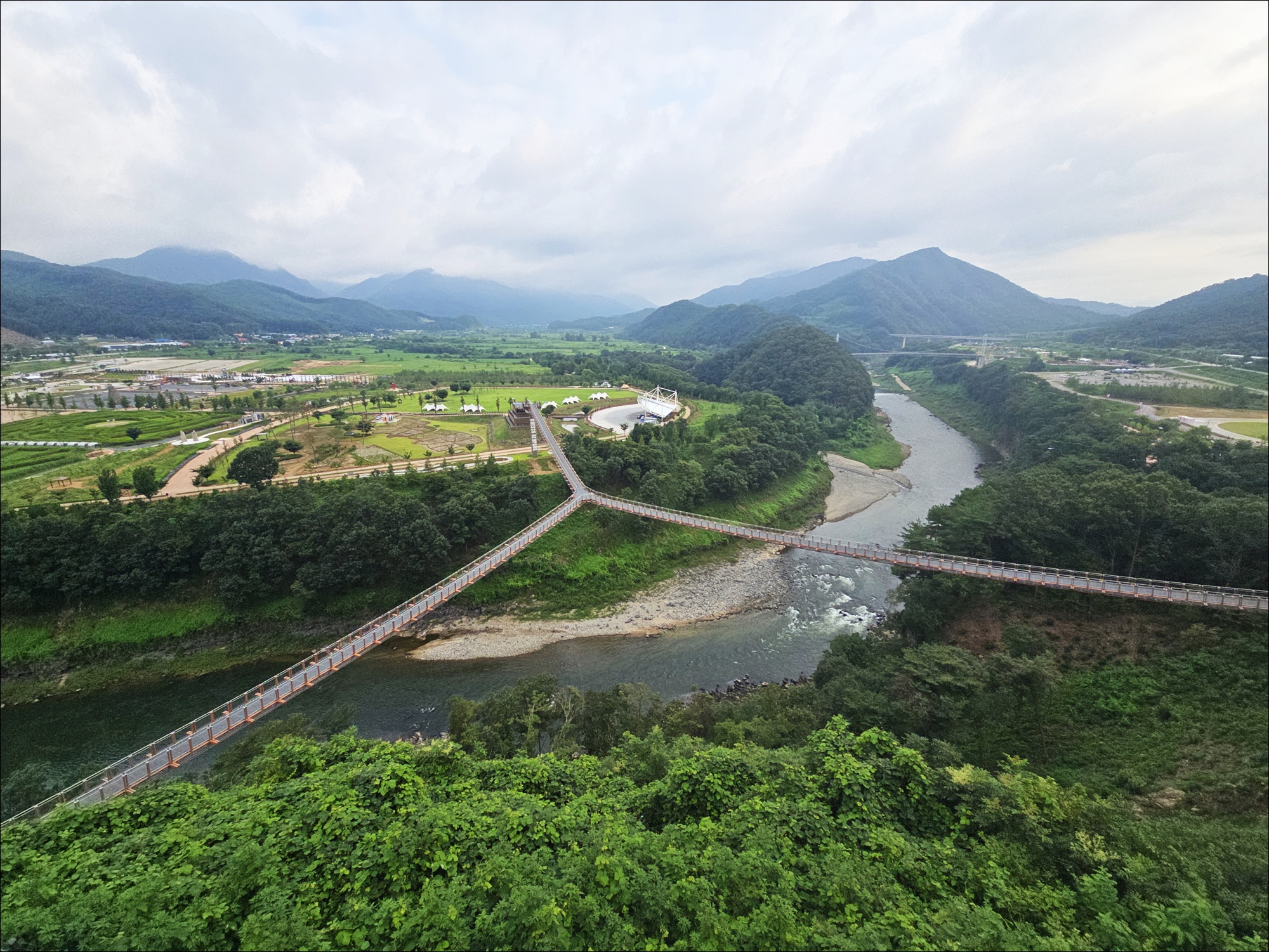 전망탑에서 내려다 본 Y자 출렁다리
