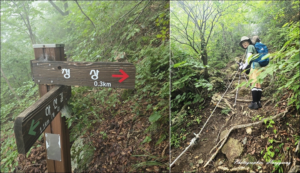 주변 뷰도 안개로 인해 볼 수도 없고 정상인증사진만 찍고 서둘러 하산을 했다