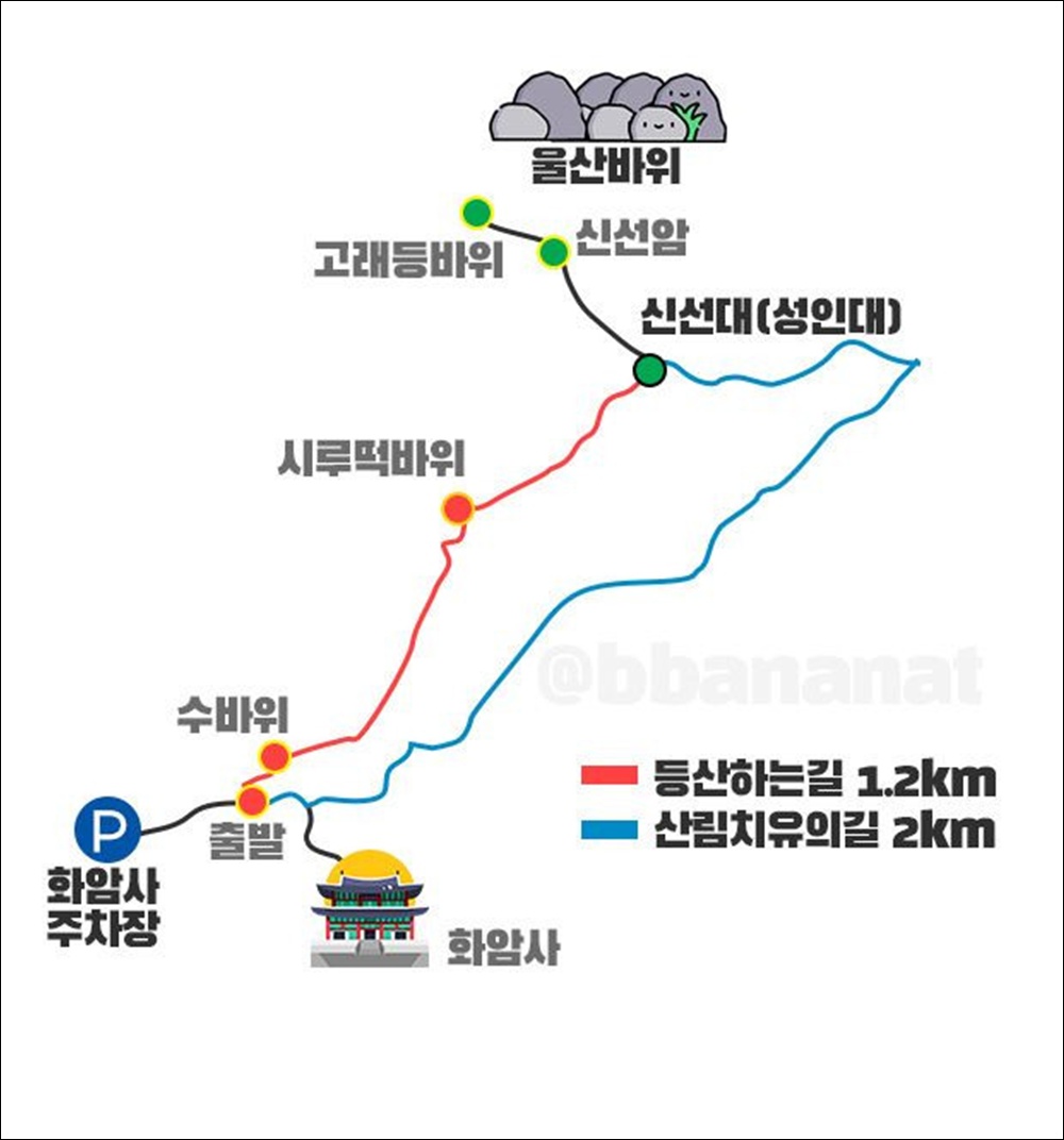 산행코스:1주차장-수암전-수암-시루떡바위-성인대(신선대)-신선암-성인대-신선봉갈림길 삼거리-화암사-1 주차장