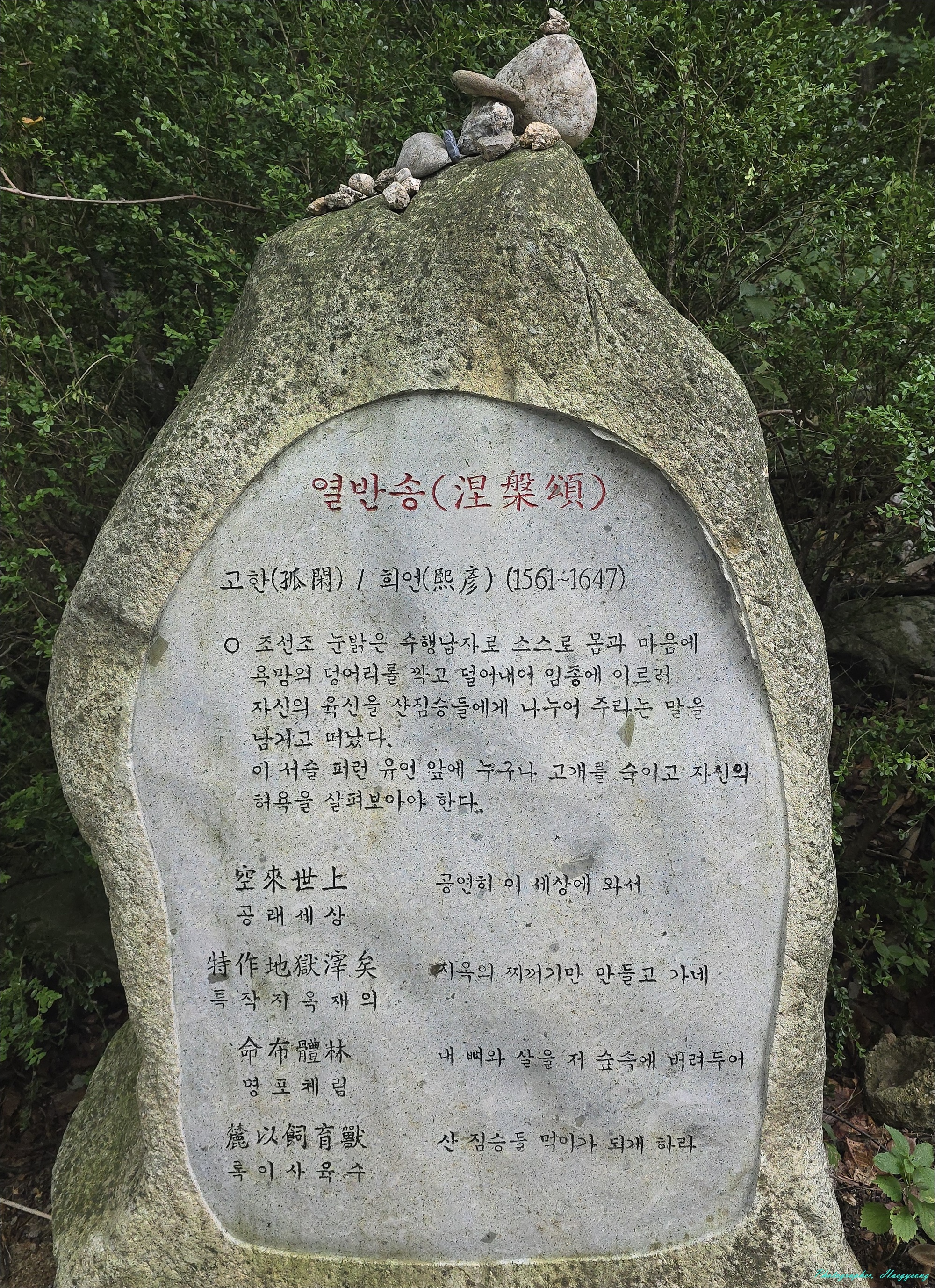 왼쪽에는 고승들의 열반송 위주로 비를 세워서 명상과 사유의 즐거움을 누리도록 했다.