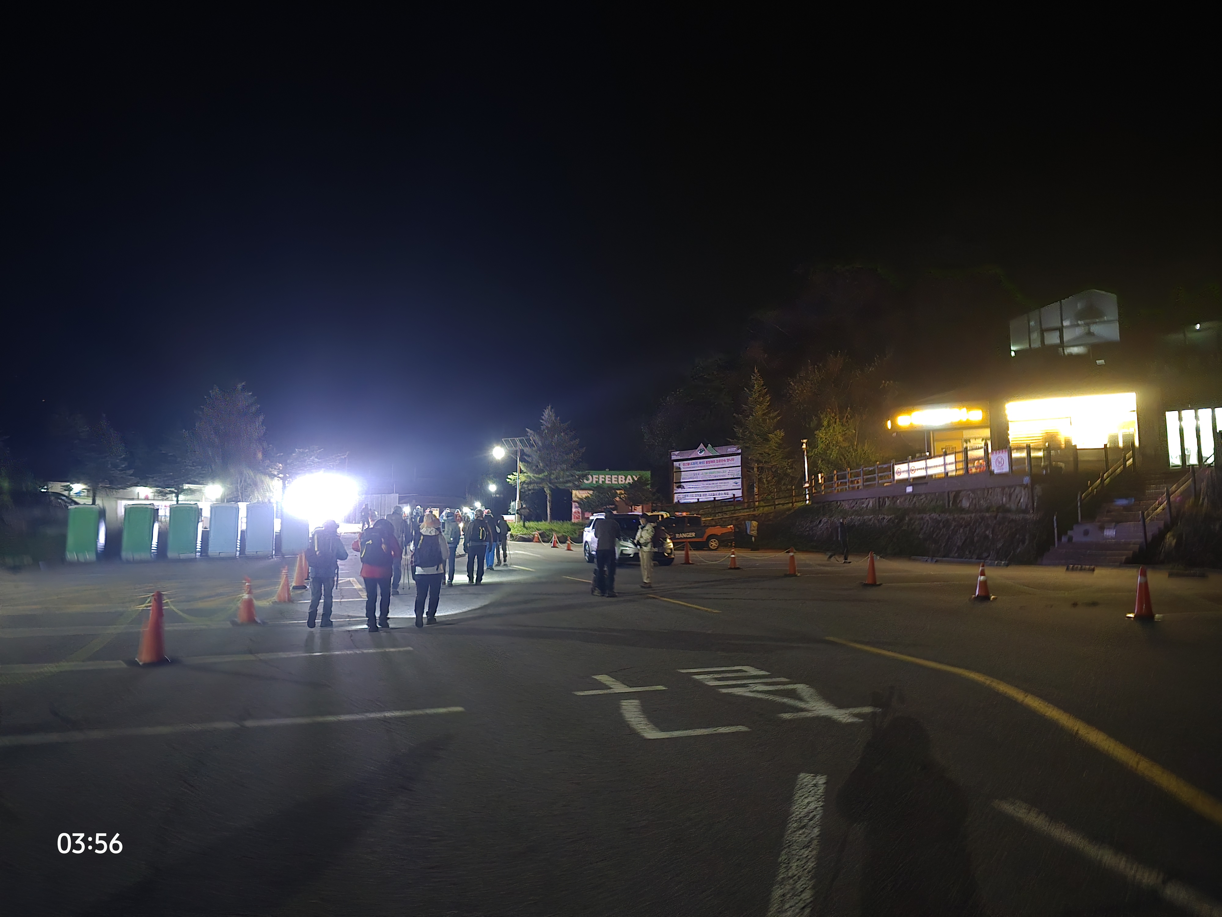 랜턴을 잊고 와서 다른 사람들 불빛에 의지해 완만한 산길을 오른다