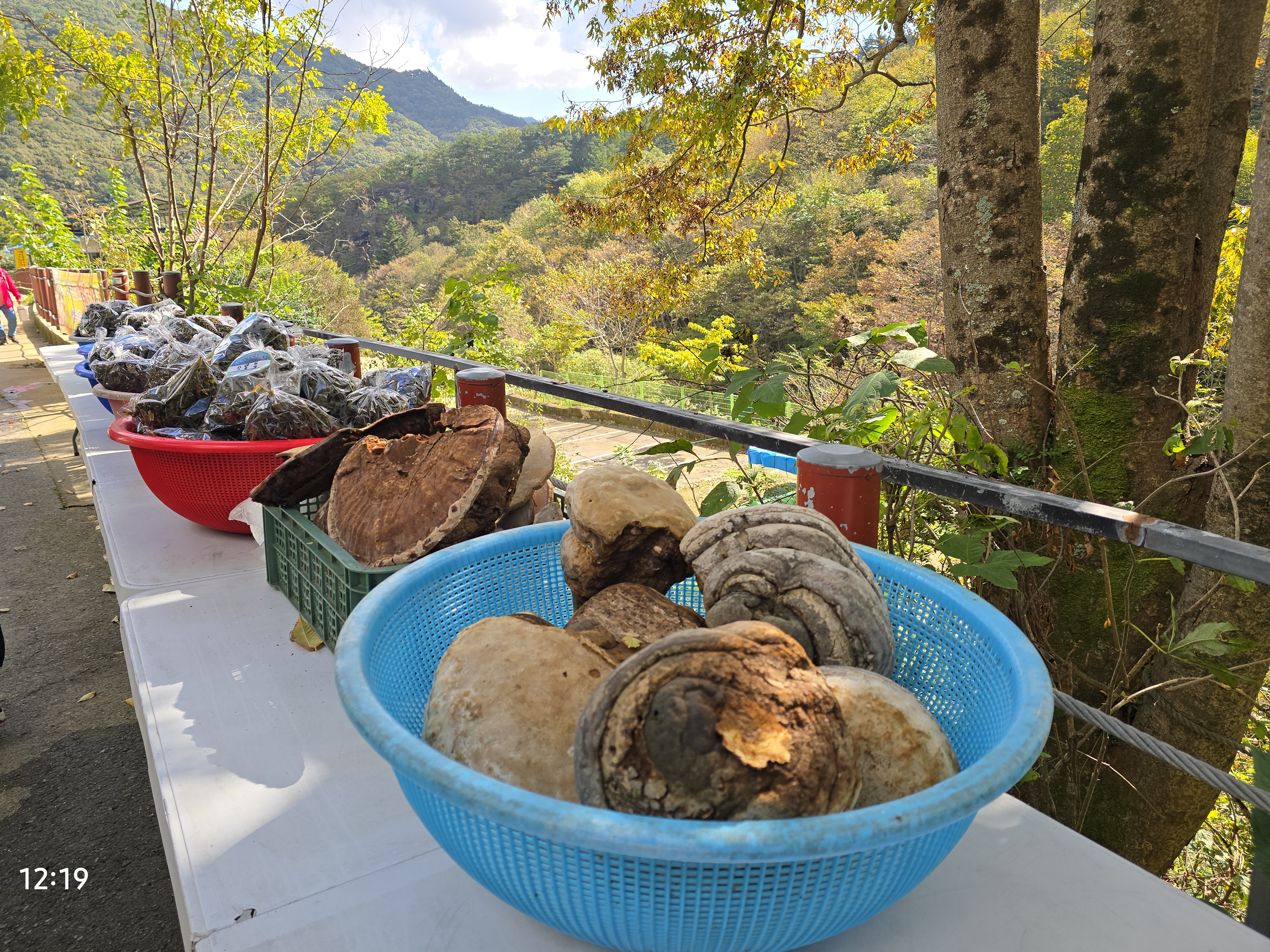 신기하게 생긴 버섯과 농산물을 파는 직전마을