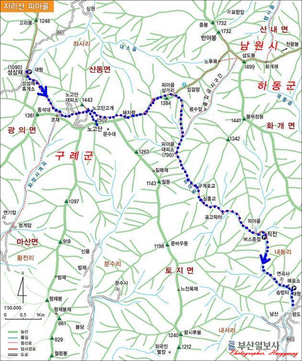 - 산행코스:성삼재-노고단왕복-돼지령-피아골삼거리-피아골대피소-피아골계곡-직전마을-연곡사주차장