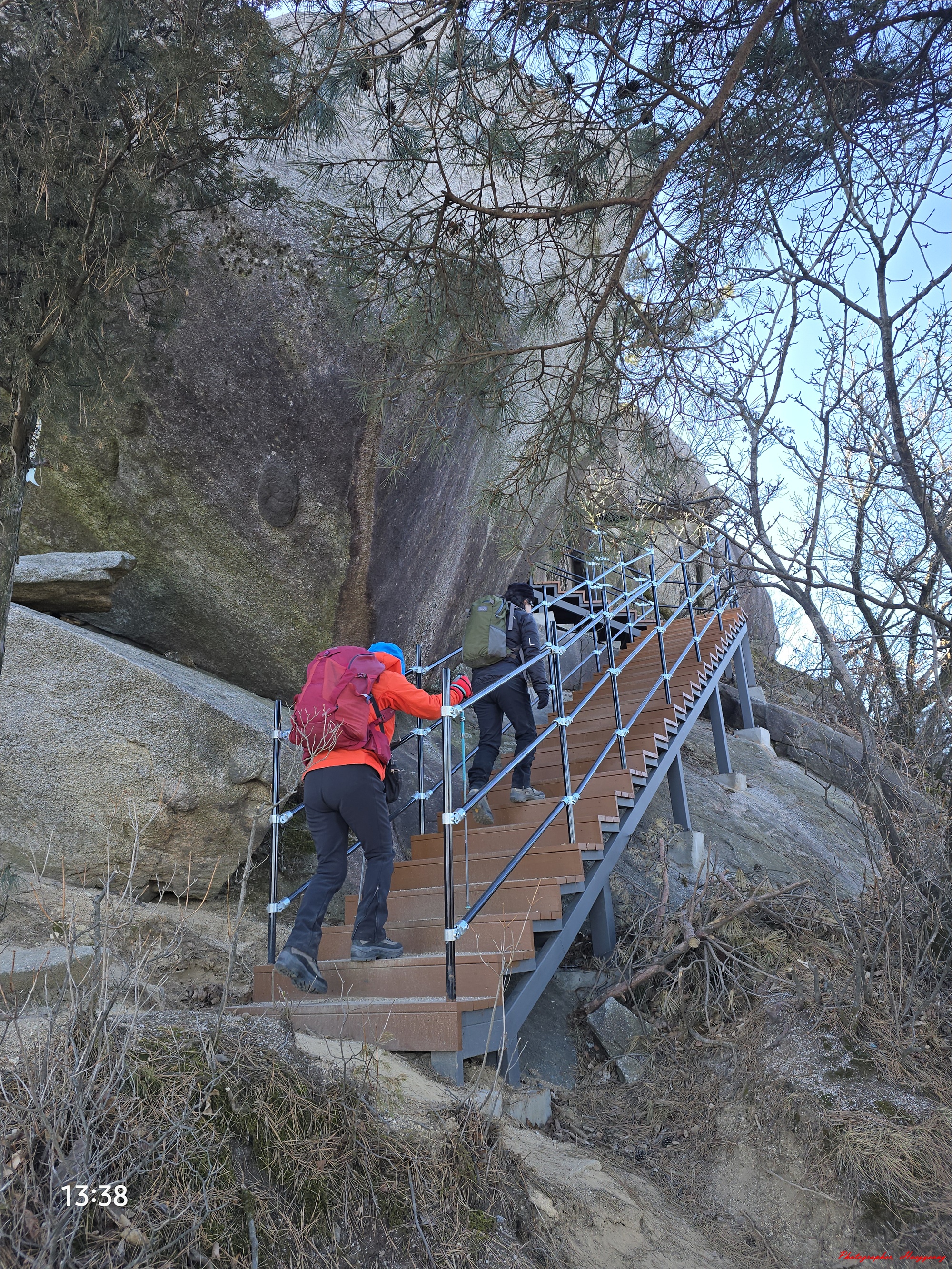 나무 계단을 따라 하산